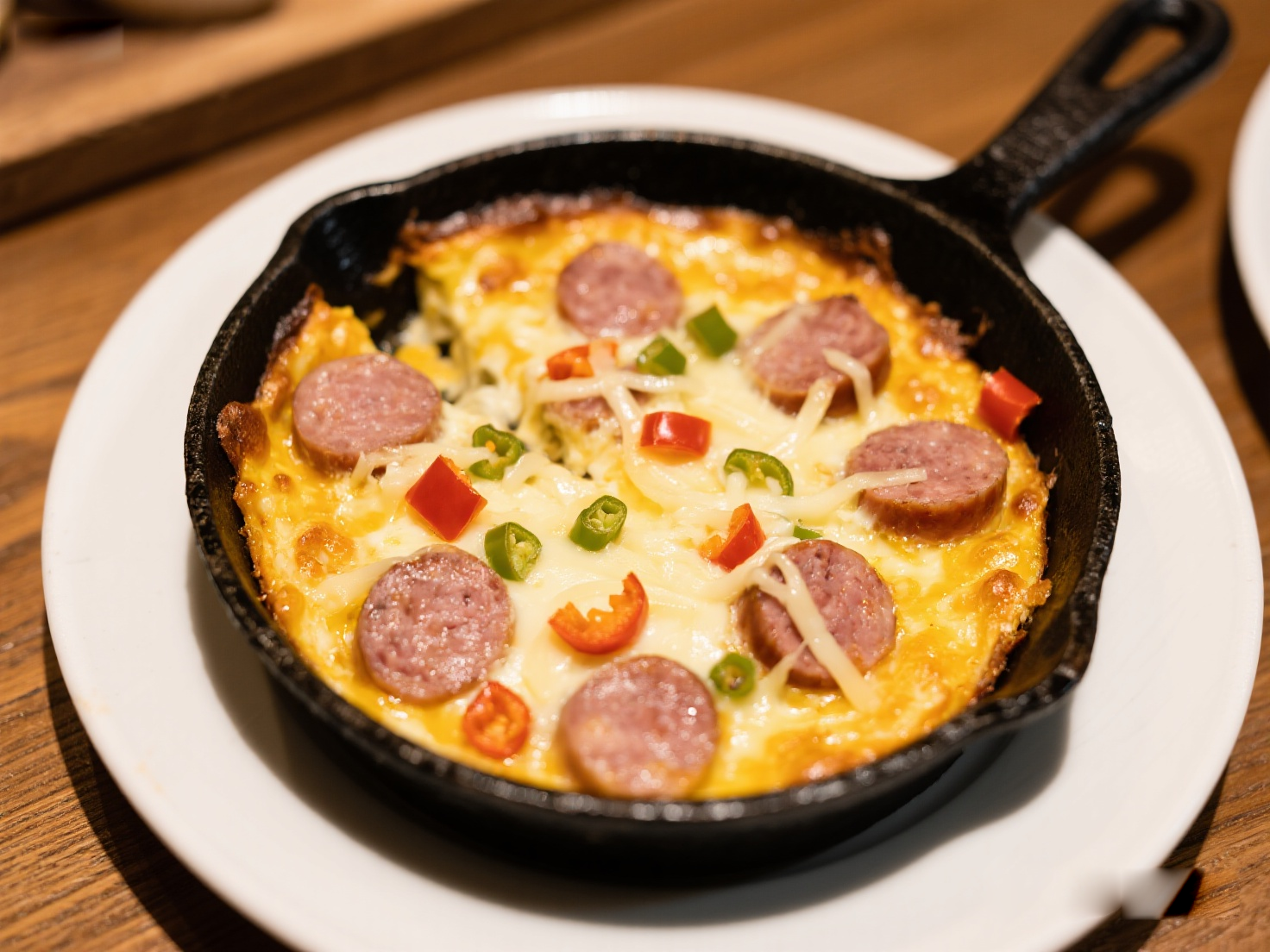 特點(diǎn):牛肉腸與雞蛋完美融合,搭配奶酪烘烤,口感豐富,適合早午餐。
