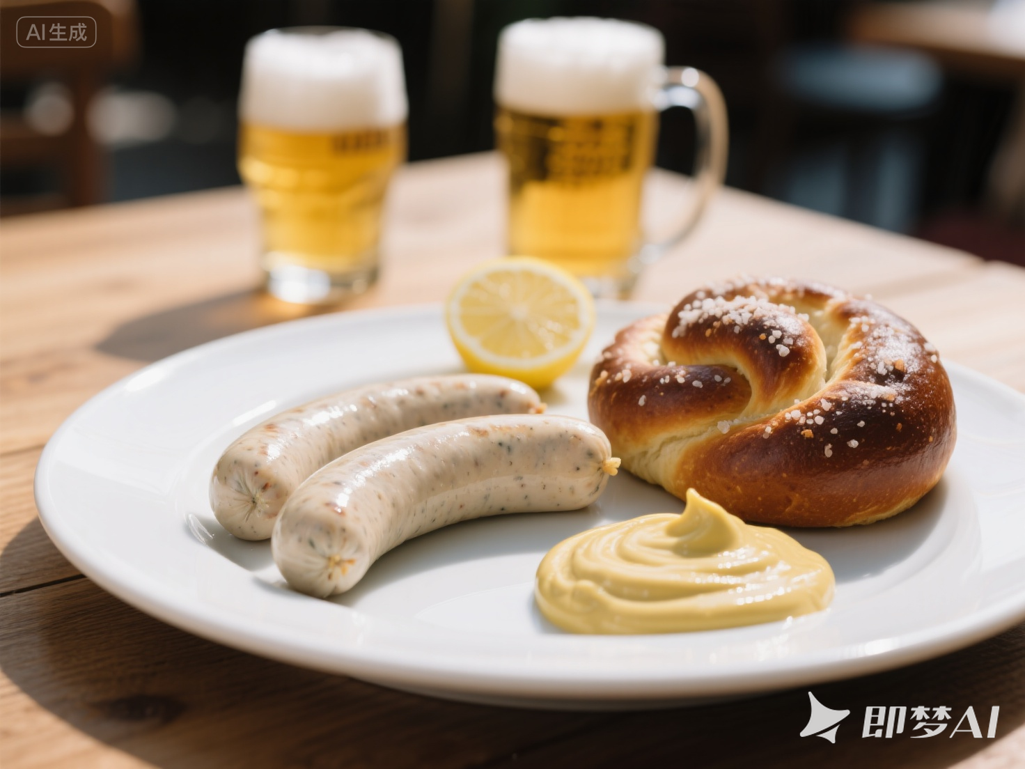 ⑥ 享用: 按照傳統(tǒng),用手拿起香腸,咬開一端,吸食其中鮮美的肉餡。搭配扭結(jié)包蘸甜芥末醬,并擠上少許檸檬汁提味。佐以冰鎮(zhèn)的白啤酒。