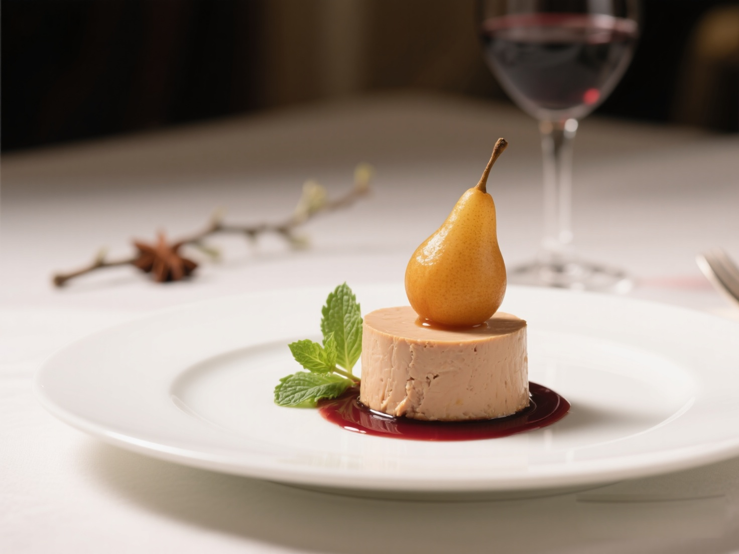 特點(diǎn):紅酒煮梨的酸甜完美平衡鵝肝的豐腴。