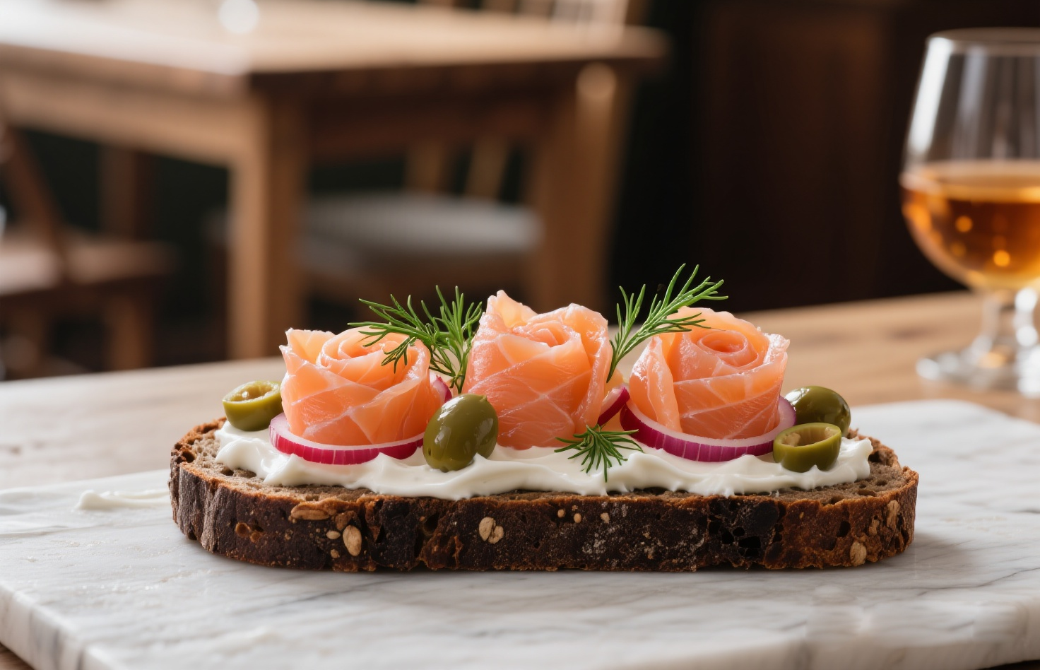 特點:黑麥面包的質樸谷物香與三文魚的細膩油潤相得益彰。